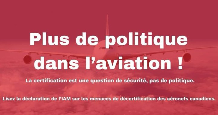 Déclaration de l’IAM sur les menaces de décertification des aéronefs canadiens