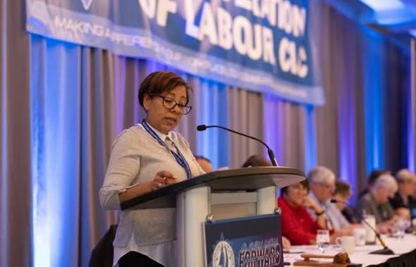 At the 2025 Nova Scotia Federation of Labour (NSFL) Convention, IAM member Melissa Marsman made history as she was acclaimed the new President of the NFSL; becoming the first woman and first person of colour to hold this prestigious position.
