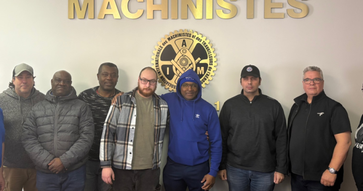 IAM members of local 2309 from Samsic Unit and Air Transat, gathered at the District 140 offices to attend the shop steward training offered by the Quebec Machinists Council’s (QMC) education department.
